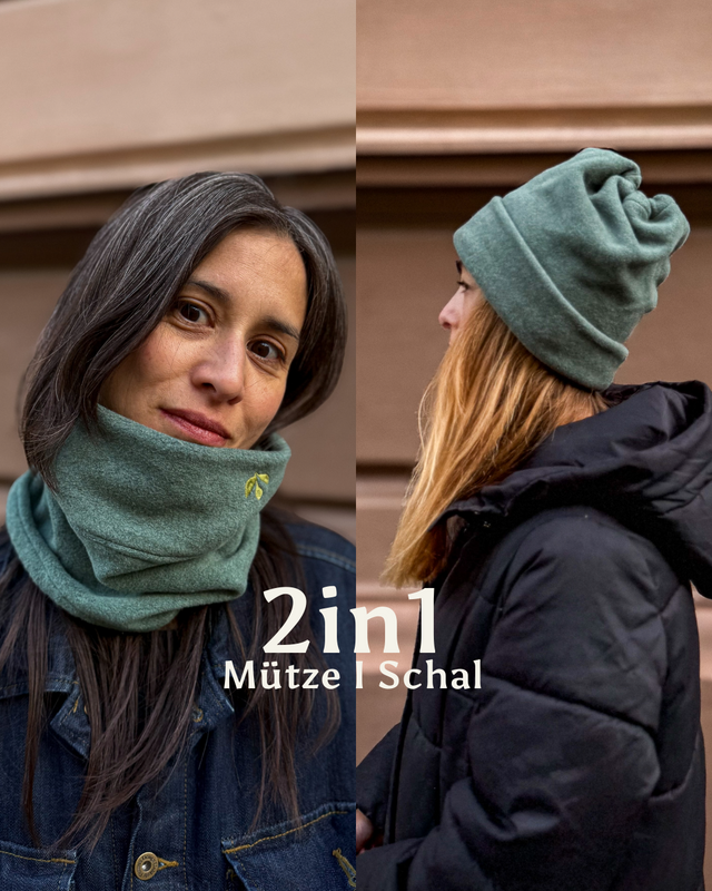 Nachhaltige Beanies, Stirnbänder, Multifunktionsschals und kuschelweiche Winterschals aus zertifizierten Bio-Naturfaserstoffen.